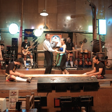 このビエンチャンキッチンにはステージがあって、タイ舞踊が見られます〜。